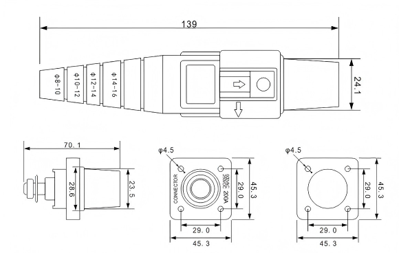 | SF-200MT-BH | Male/Female Socket | Black | 16-35 mm² | Screw Fixation |